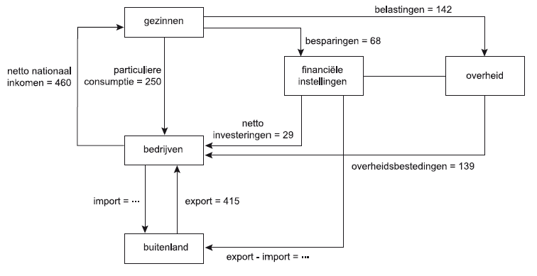 In het onderstaande kringloopschema staan uitsluitend geldstromen tussen economische sectoren weergegeven.