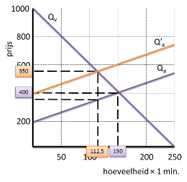 Bereken hoeveel procent van de heffing op de consumenten wordt afgewenteld. |