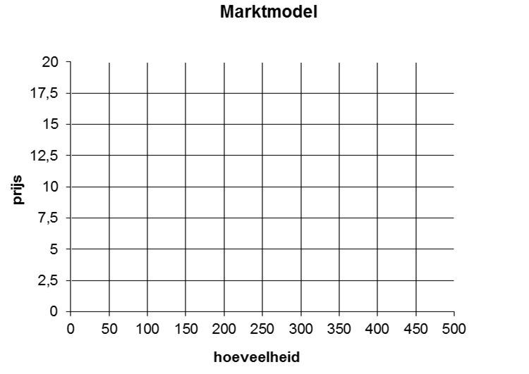 Teken de vraag- en aanbodvergelijking in onderstaande figuur. |