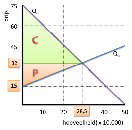 Arceer het consumentensurplus. |