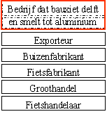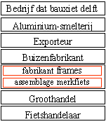 De productieweg begint bij het winnen van bauxiet (grondstof voor aluminium) en eindigt uiteindelijk bij de fietshandelaar die de fiets verkoopt aan de consument.