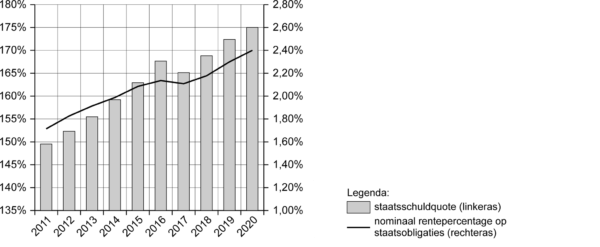 | 1 | Geef met behulp van figuur 1 een verklaring voor de ontwikkeling van het nominale rentepercentage op staatsobligaties. |