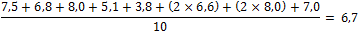 In de eerste periode van het schooljaar krijgt Jan voor het vak economie alleen maar schriftelijke overhoringen. Deze so-tjes hebben allemaal dezelfde weging (1). Hij haalt achtereenvolgens de volgende cijfers: 7,5Â –Â 6,8Â –Â 8,0Â –Â 5,1