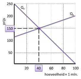 Bereken de evenwichtsprijs en de evenwichtshoeveelheid. |